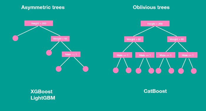 하지만 Ordered Boosting에서 사용되는 모델은 Oblivious Tree이다. Oblivious Tree는 트리를 분할할 때, 동일한 분할 기준이 전체 트리 레벨에 적용된다. 이는 균형잡힌 트리를 만들며, Overfitting을 방지할 수 있다.